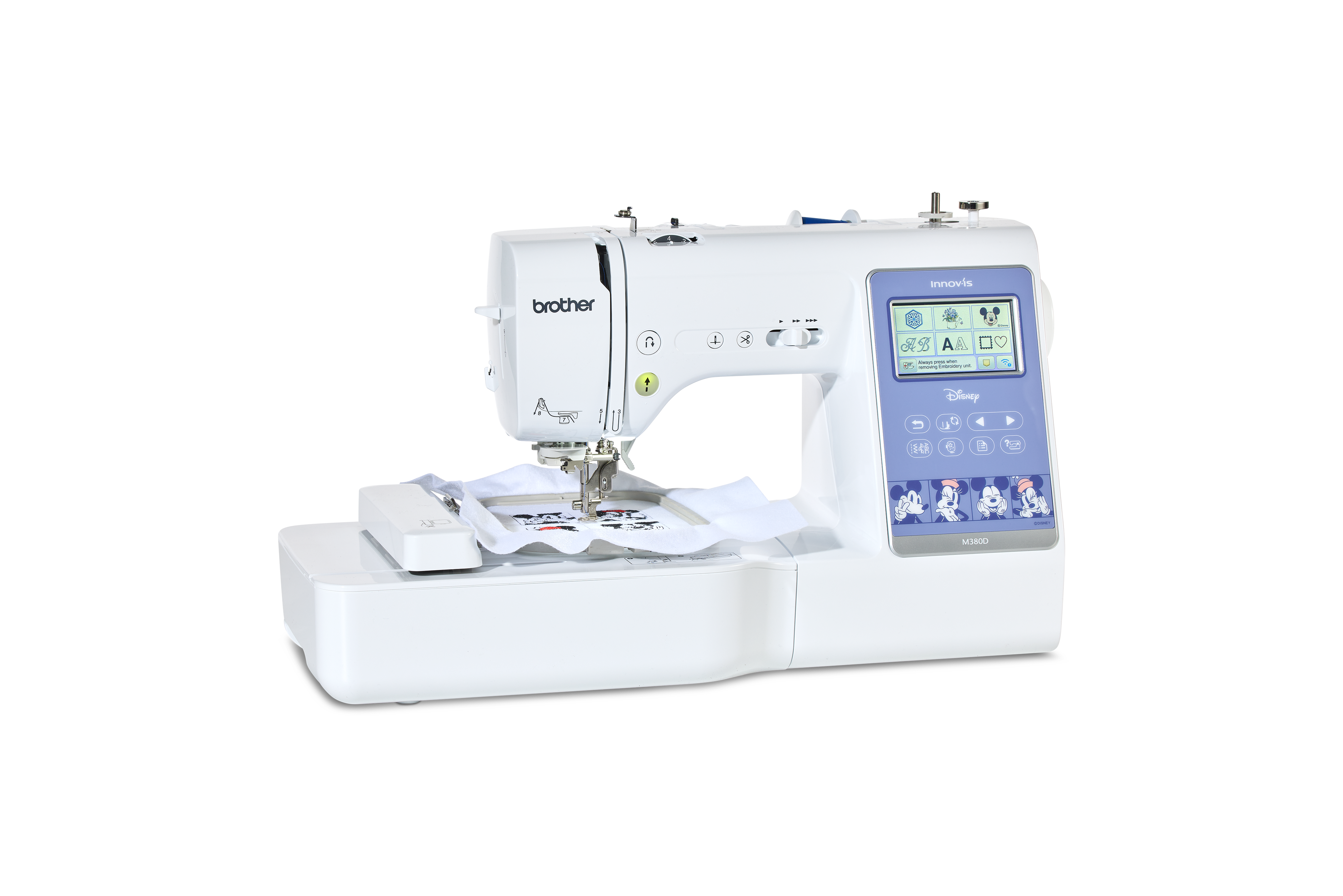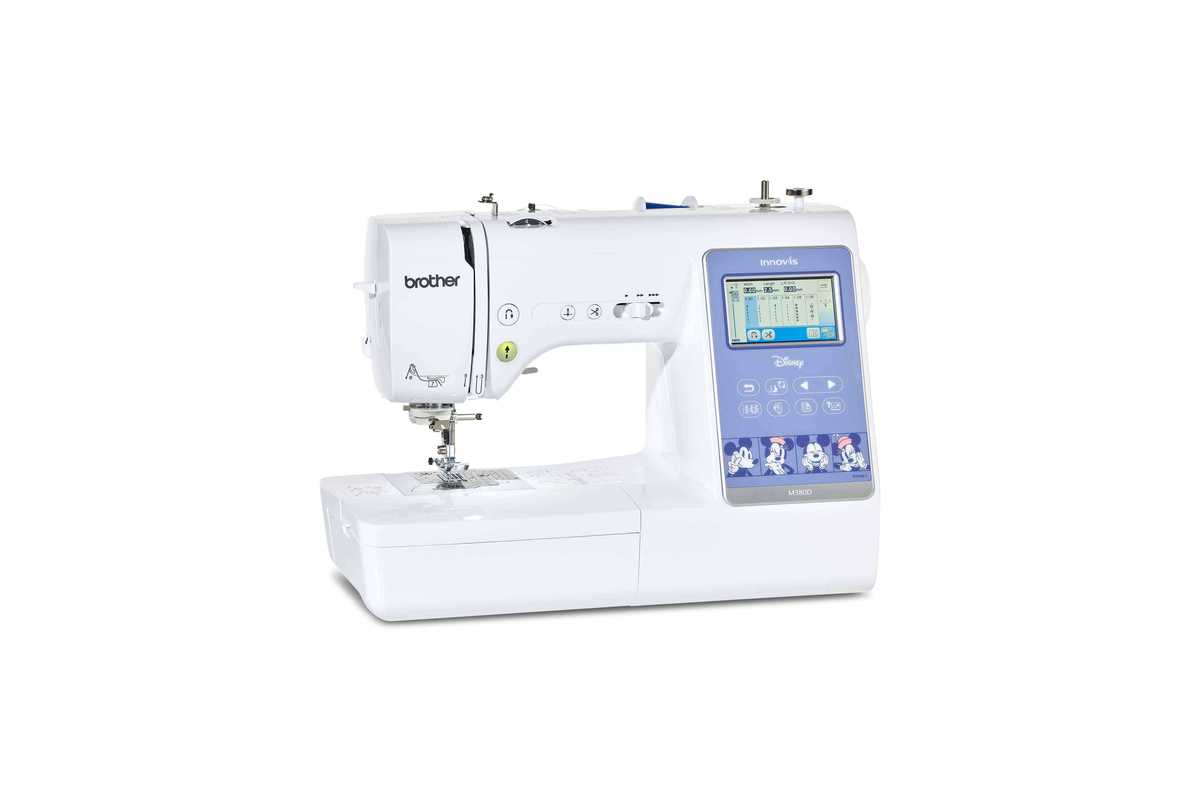 Innov-is M380D Disney mašina za šivenje, vez i quilting pretvara sve što dotakne u čarobnu priču. Za vezenje ćete pronaći 200 ugrađenih uzoraka, od čega je 65 Disney motiva, za šivenje nudi izbor od 181 boda, uključujući 10 automatskih rupica za dugme iz jednog koraka, 11 fontova za vez i 4 fonta za šivenje.